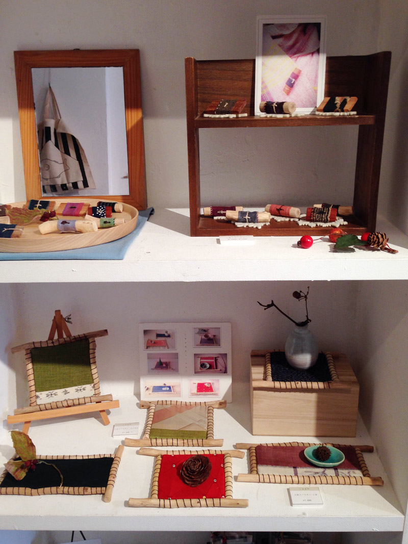 こちらは、小枝と古布を組み合わせた作品を手がける、こまきやさんのコーナー。