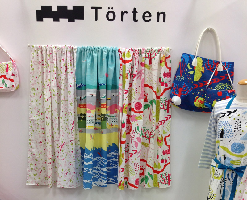 そしてこちらは、紙野夏紀さんデザインのTörten。2015年に第一弾を発表後、待望の第二弾ができ上がりました! ちぎり絵で世界観を表現した独特のテキスタイルは健在、さらにパワーアップしてストーリー性を感じる絵画的な風景が登場です。