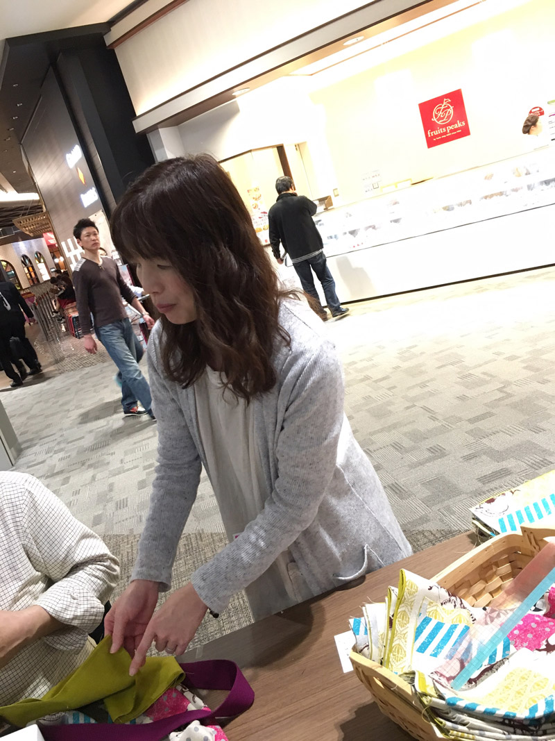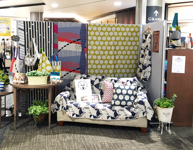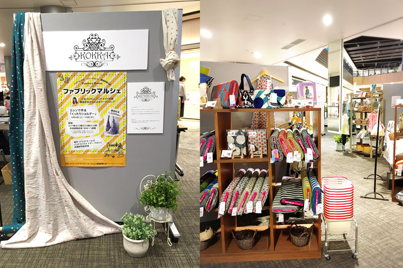 イベント会場は、巨大なショッピングモールとして話題のイオンモール幕張新都心。イベントが開催された休日は家族連れで大にぎわいです。そのメインモールとも言えるグランドモール2階、パンドラハウスさんのお店前に週末限定の「ファブリックマルシェ」が立ち上がりました。