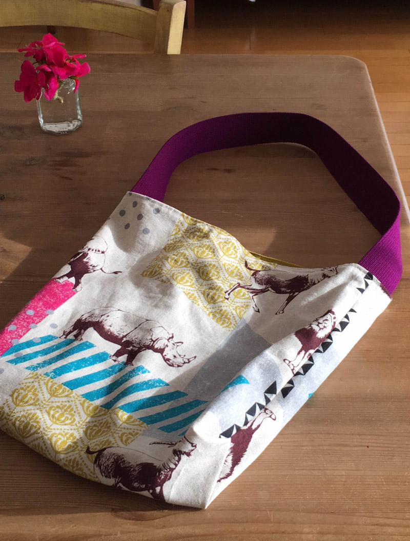 echinoの布で作る「くったりショルダー」に使ったのは、10th Anniversary / 2015 echino fabric collectionのなかから「zon」。