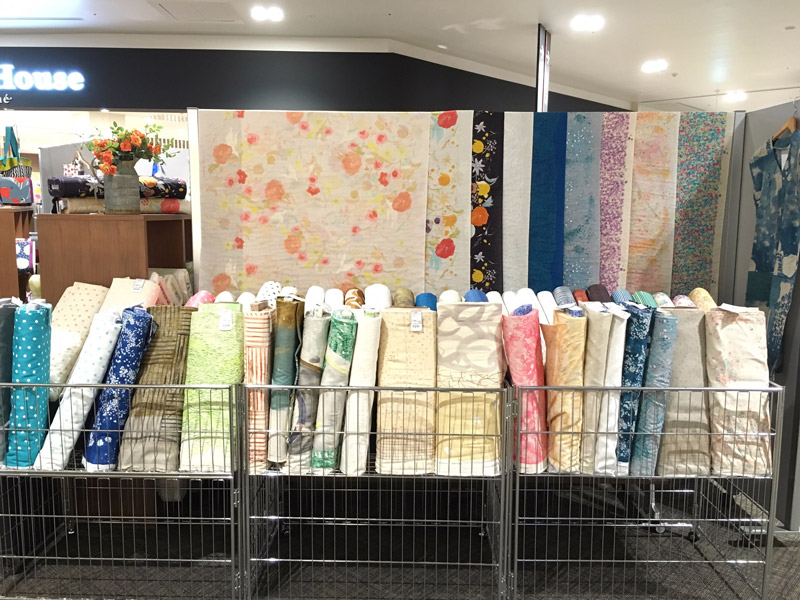 お店の棚はスペースに限りがあるので、なかなかすべての布を並べておけないのが実情。こんなふうに全柄全配色を見比べながら選べるのもイベントならでは、ですよね!