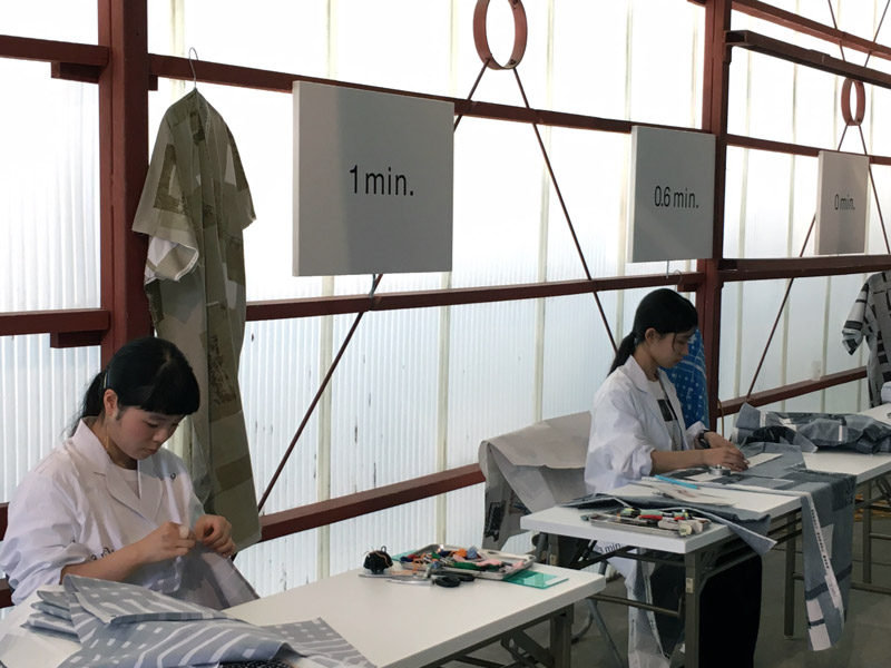 会場には、そんな「3分ソーイング」をイメージさせるインスタレーションが。
