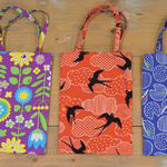 「ドリッピングという絵の具を垂らして描く絵画技法のもつ偶然性・即興性を表現した柄です」(シミズダニさん)。2グループの配色が繰り返されているパターンなので、そのまま使って幅広ボーダーのワンピースにしたり、持ち手と表布を別配色にして変化をつけたり、1柄でいろいろなデザインが楽しめます。