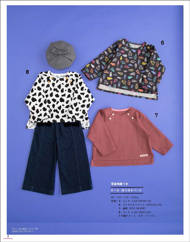 8番のトップスの生地は「ANIMAL SKIN」シリーズ、品番はLGA-36020-2Aです。ダブルガーゼ、コットン100%