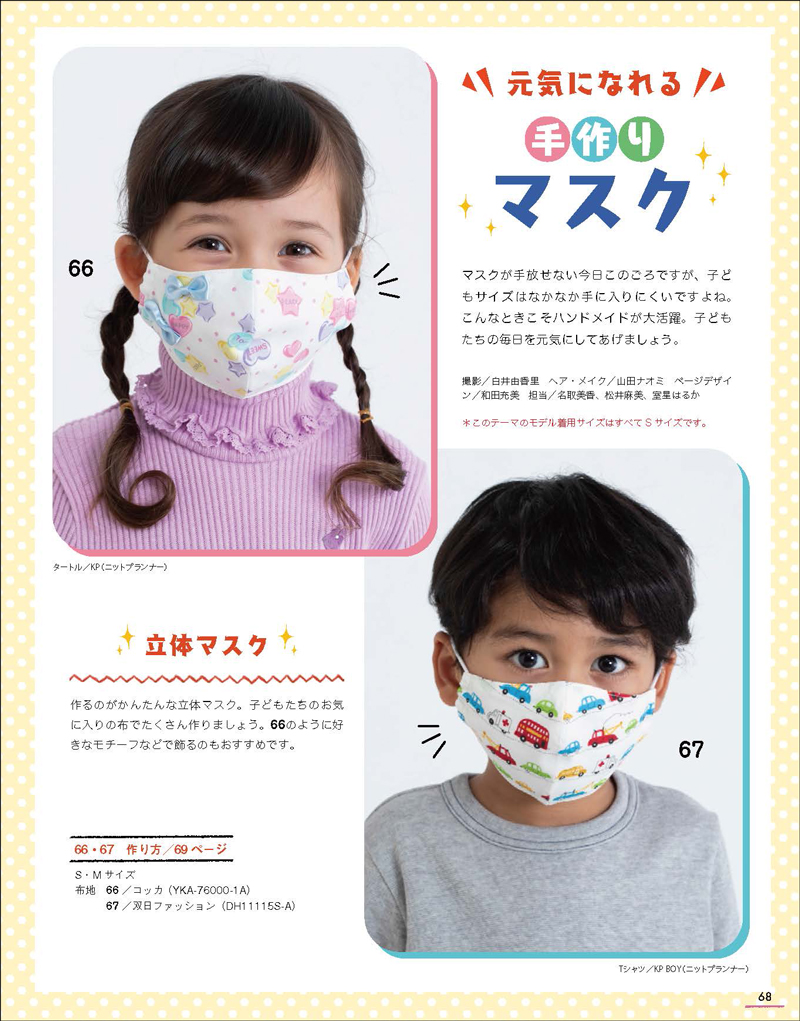 66番のマスクの生地は「PASTEL POP」シリーズ、品番はYKA-76000-1Aです。シーチング、コットン100%