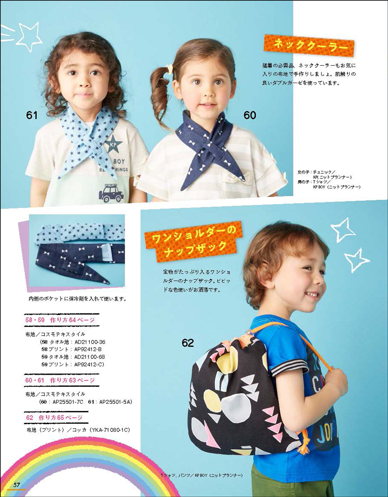 62番のナップザックの布は「Geometrico」シリーズ オックスフォード コットン100% 蛍光プリント YKA-71080-1C