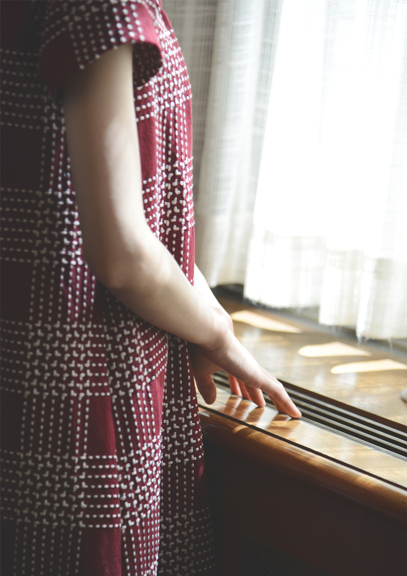 太番手糸ステッチがポイントの刺し子ドビー・ビッグチェック「縦と横」