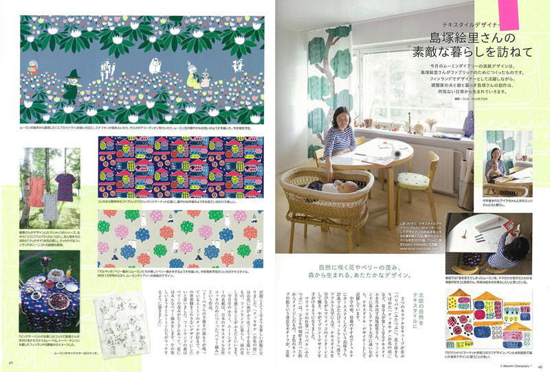 『MOE』12月号に、テキスタイルデザイナー、島塚絵里さんデザインの生地が紹介されました。