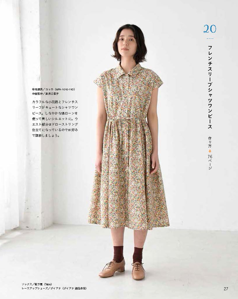 フレンチスリーブシャツワンピースに使われている生地は、「FlownnyⅡ」シリーズのミニフラワー(綿100%ローン)NFA-1010-11C