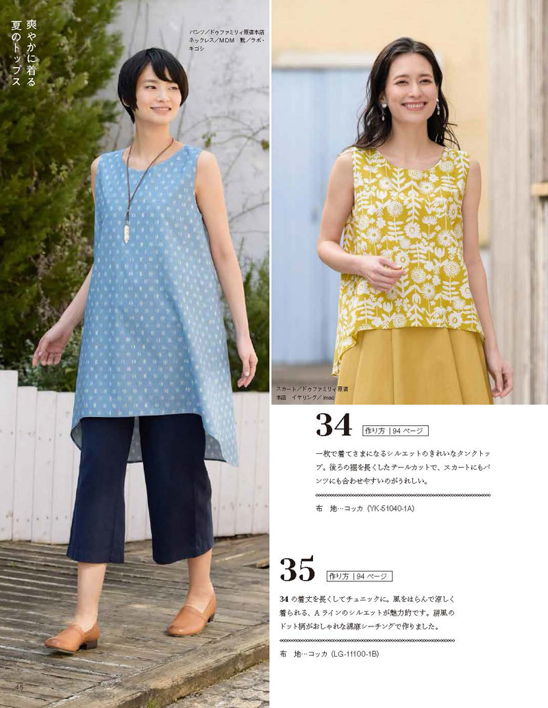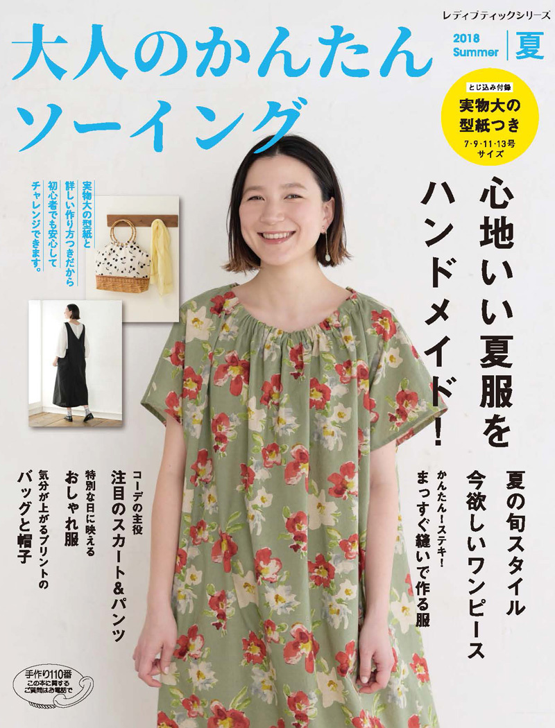 『大人のかんたんソーイング2018夏』(ブティック社)に、コッカの生地を使った作品が掲載されています。使われているのは、naniIRO, FABRIC CARAVAN, Trefle cucito,Blue-Blue, SIMPLY GOLD,Natural Garden,Funny Face,トリックバスケット柄など、盛りだくさんです。