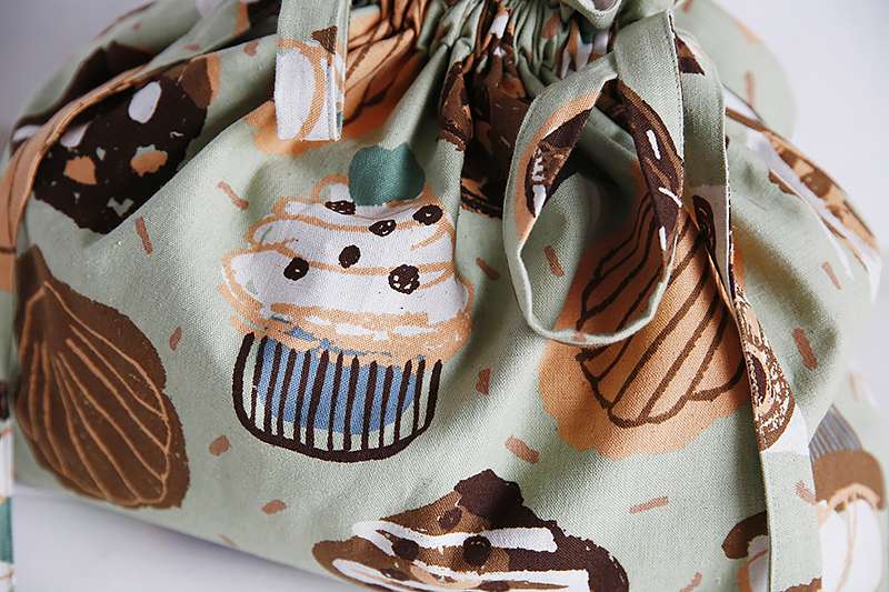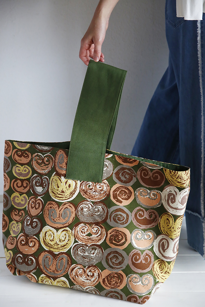 マドレーヌ、マフィン、カップケーキ・・・。美味しそうな焼き菓子が踊る総柄プリントです。インパクトを残しながらも大きすぎない柄は、柄どりを気にせずに洋服やバッグ作りが楽しめます。
