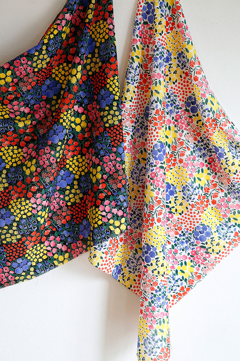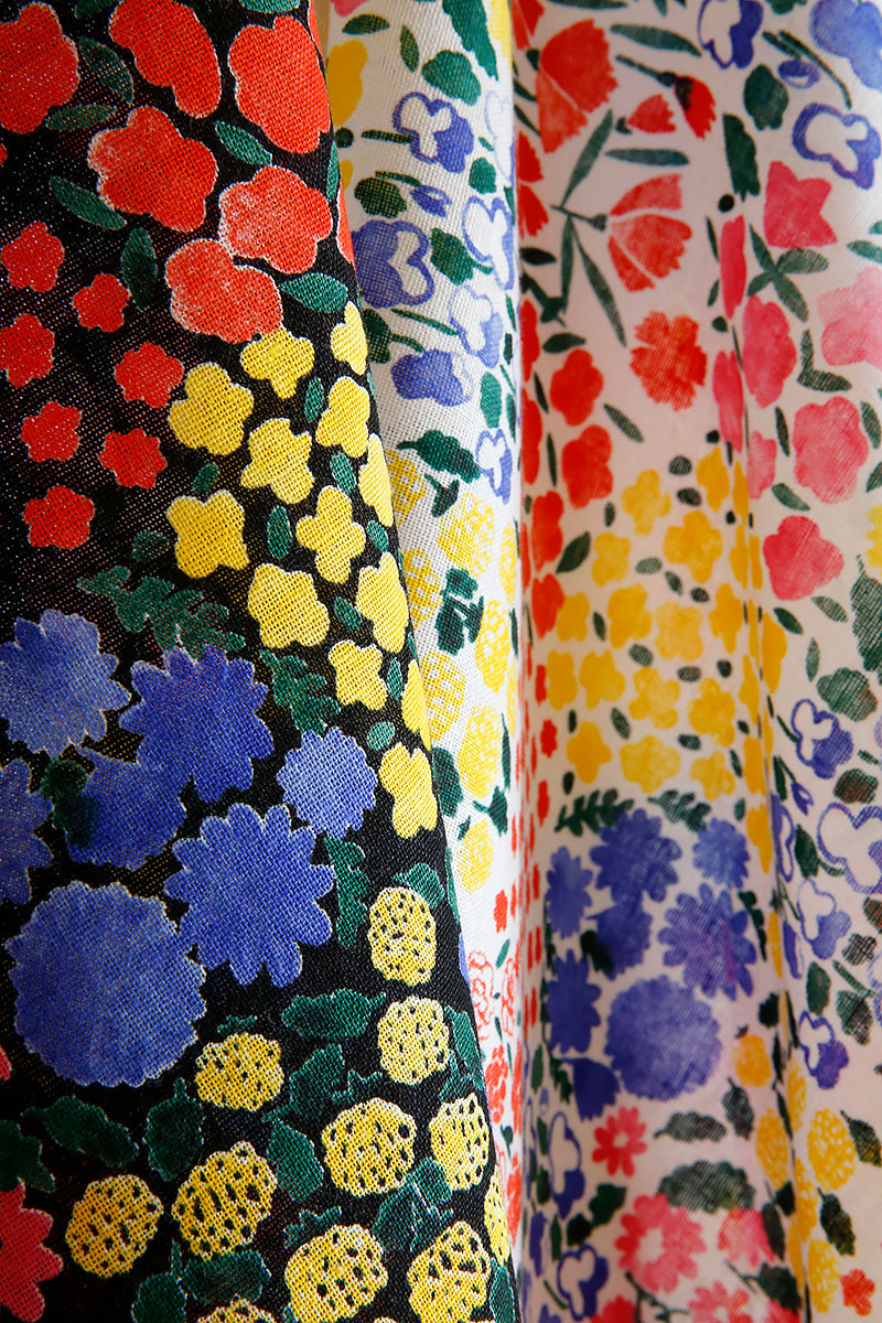 色とりどりの花がらを一年中楽しみたいと思い、肌触りのいい柔らかなガーゼはお洋服に、