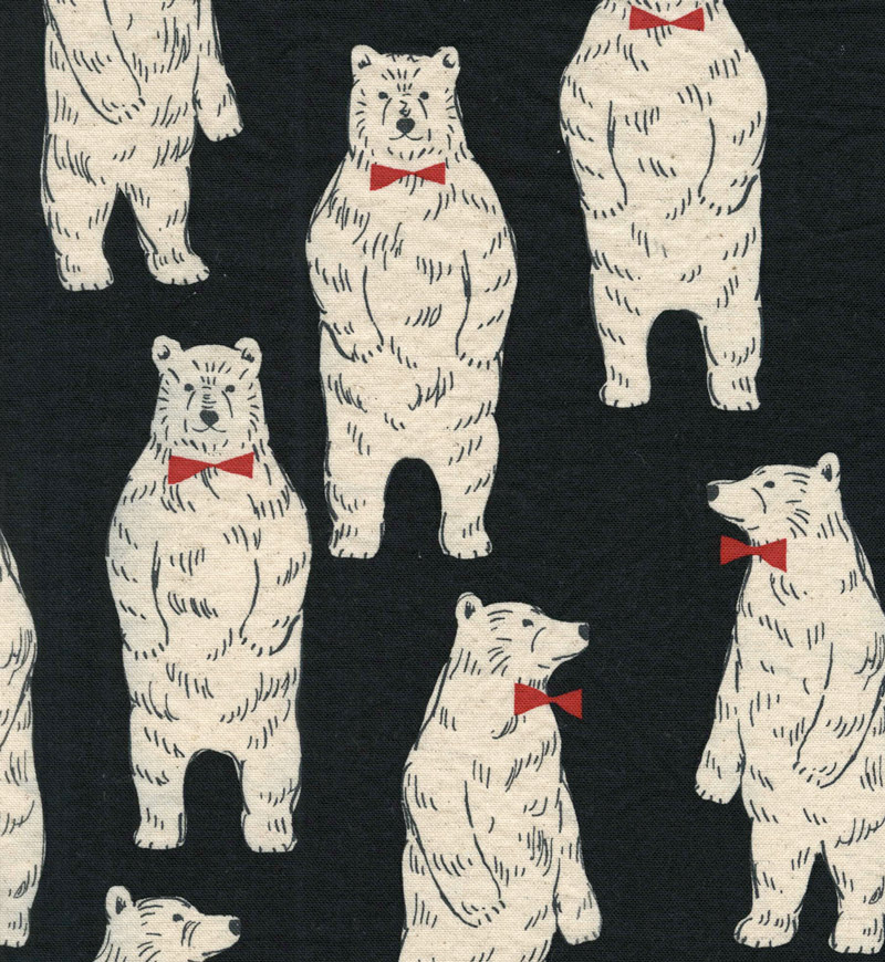 そして3位は、コッカオリジナル生地、ノルディックアニマルからポーラーベア柄がランクイン。蝶ネクタイをあしらったおちゃめなホッキョクグマモチーフが人気急上昇。大きめの柄の綿麻キャンバス地は、ざっくりとしたシンプルなバッグなどを作るとインパクトです!
