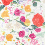 2月の販売ランキングは、1〜3位まですべて「Naomi Ito textile nani IRO」です。1位と3位の柄は[As it is(アズ イット イズ)]。1位は綿100%のダブルガーゼ、3位はリネン100%です。2位の柄は[rakuen(ラクエン)]。花々や鳥が唄い、光あふれる世界を表現したテキスタイルです。綿100%のダブルガーゼ。